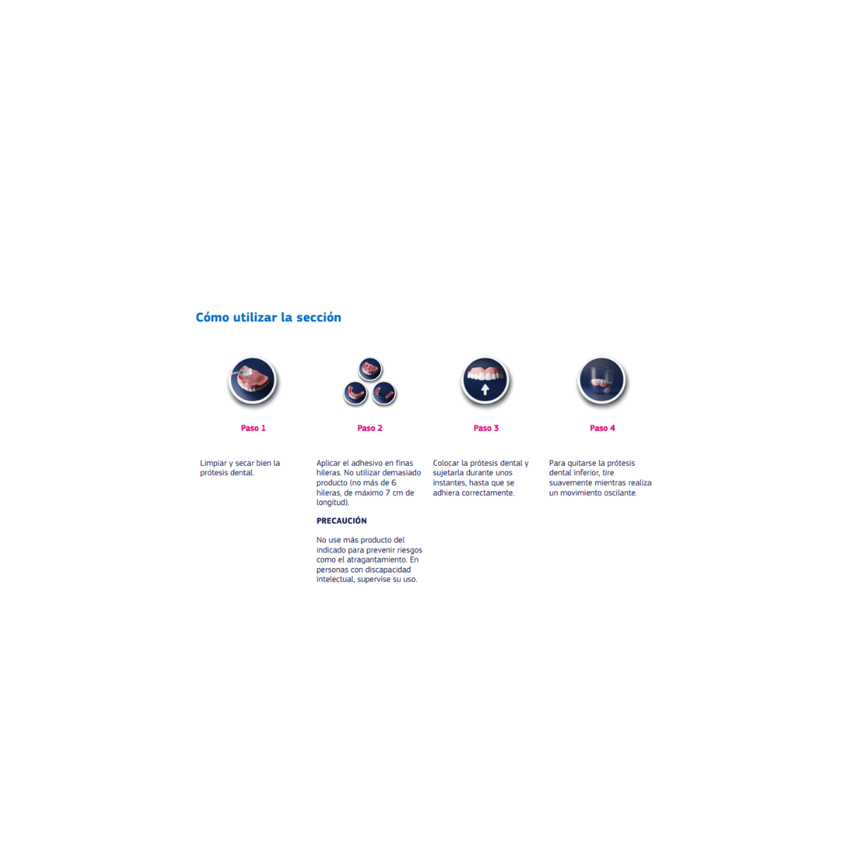 Como cada dentadura es única, puede necesitar varios intentos hasta encontrar la cantidad de crema adhesiva adecuada a aplicar para usted.